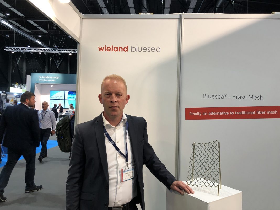 There is a large market Wieland Bluesea is elbowing itself into. It is nylon that dominates the market for mesh nets across salmon farms. Their idea is to make the same out of brass.