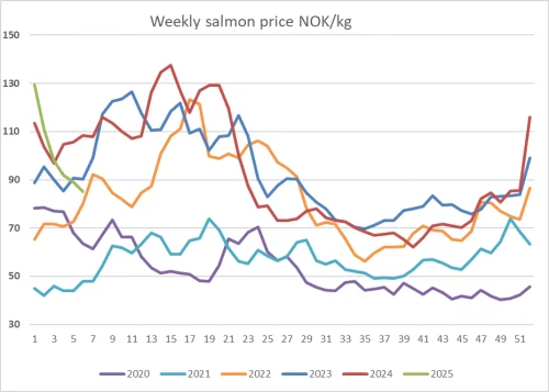 - “Yes. 2-3 kg is at NOK 70-71 ($6.09-6.17/€5.95-6.04). 6+ kg is at NOK 98 ($8.53/€8.33),” he adds.